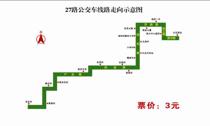 為進一步提升我市公交整體服務能力,加快推進城鄉(xiāng)一體化發(fā)展進程,促進市、縣、鄉(xiāng)經(jīng)濟快速發(fā)展,結(jié)合部分市民建議,市公交公司通過實地調(diào)研,并根據(jù)中心城公交線網(wǎng)布局實際情況,在6月2日新開通由公交西站至東營區(qū)牛莊鎮(zhèn)官莊村27路公交車,具體情況如下:
