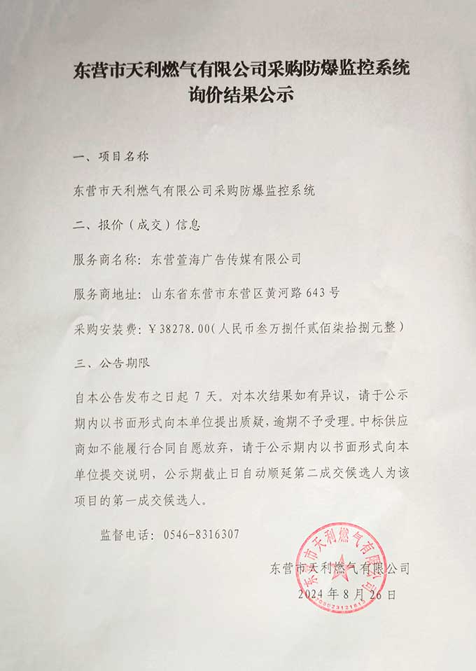 東營市天利燃?xì)庥邢薰?br/>2024年8月26日