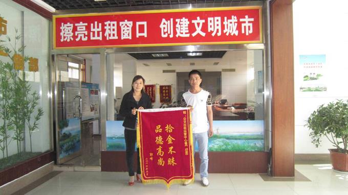 5月1日晚,家住史口鎮(zhèn)的郭峰先生在西城淄博路就餐后搭乘魯ET1980號(hào)出租車返回東城東三路附近下車,下車時(shí)不慎將隨身攜帶手提袋里的手機(jī)、銀行卡等證件及其他物品遺失在出租車上,因下車未取出租車發(fā)票,一時(shí)無法聯(lián)系司機(jī)。次日出租車駕駛員李懷芬將撿到的手提袋主動(dòng)交給運(yùn)營中心,后經(jīng)運(yùn)營中心工作人員與乘客取得聯(lián)系,將出租車司機(jī)李懷芬撿到的手提袋物歸原主。事后乘客郭峰送來一面錦旗對出租車駕駛員李懷芬表示感謝。