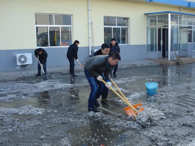 在清雪過(guò)程中,同志們不畏嚴(yán)寒,破冰除雪,干勁高漲。在大家的共同努力下,僅用兩個(gè)小時(shí)便將車隊(duì)門前積雪清掃干凈,用自己的勞動(dòng)為車隊(duì)全體人員的安全出行提供方便,真正以實(shí)際行動(dòng)落實(shí)十八大精神,為營(yíng)造和諧公交貢獻(xiàn)自己的力量。