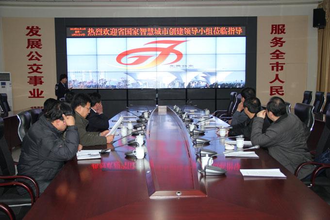 我市申報的國家智慧城市規(guī)劃綱要、實施方案等申報材料已經(jīng)通過初審,此次現(xiàn)場考察主要是考察我市三網(wǎng)覆蓋情況、數(shù)字化城市建設情況、智能交通建設情況、平安城市建設情況以及云計算中心建設情況??疾旖M來我公司主要是考察公交智能化建設情況,聽取了工作人員的現(xiàn)場講解演示及智能化公交建設情況匯報。