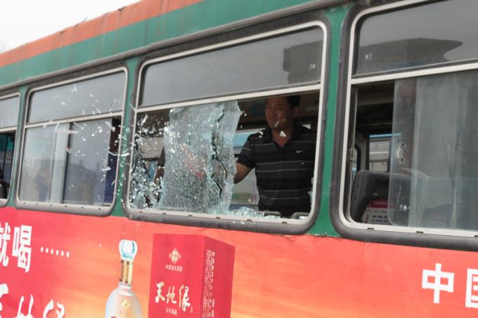 演練中,一輛滿載乘客的公交車驚現(xiàn)火情,車輛冒出大量濃煙,已經(jīng)無(wú)法繼續(xù)行駛,車上司乘人員迅速啟動(dòng)應(yīng)急預(yù)案,開啟車門并用應(yīng)急錘敲碎車窗玻璃組織引導(dǎo)車廂內(nèi)的乘客緊急疏散,全體乘客用手捂住口鼻,緊張而有序地疏散到安全地帶。