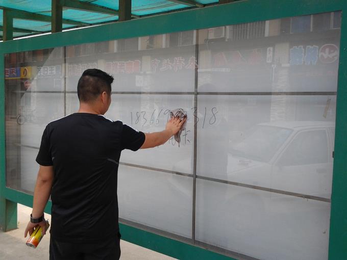 8月7日上午,市公交公司汽車二隊志愿者冒著35℃的高溫,再次來到他們負責的9個公交站點,對站牌和候車亭小廣告進行了清理和鏟除。