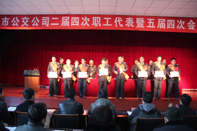 大會(huì)由市公交公司副經(jīng)理李學(xué)忠同志主持,趙龍副經(jīng)理宣讀了2013年公司先進(jìn)集體、先進(jìn)個(gè)人及優(yōu)秀黨組織的表彰決定,并進(jìn)行了頒獎(jiǎng)儀式。會(huì)議審議通過了公司經(jīng)理朱新民同志做的《2013年公司工作報(bào)告》、工會(huì)主席崔磊做的《2013年公司工會(huì)工作報(bào)告》,會(huì)議還審議通過了《公司2013年財(cái)務(wù)工作報(bào)告》、《公司行車安全制度修改草案》和《公司稽查管理規(guī)定修改草案》等事項(xiàng)。