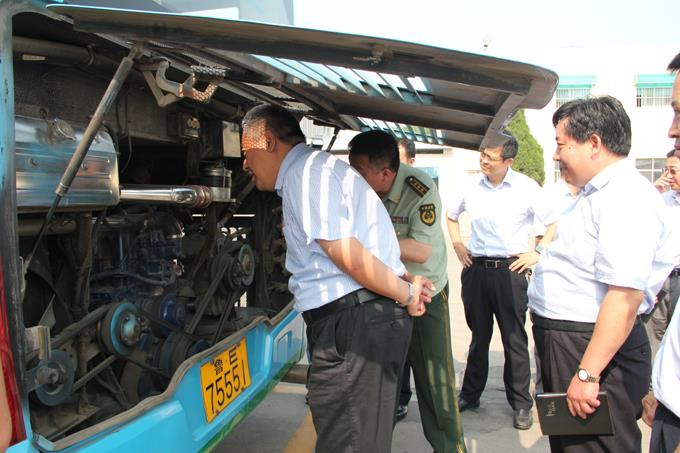李俊峰一行首先來到車場對安全錘、滅火器、發(fā)動機(jī)消防彈、逃生口、攝像頭等公交車輛消防設(shè)施和油庫、加氣站等重點部位進(jìn)行了認(rèn)真查看。隨后,又來到公交調(diào)度指揮中心觀看了公交智能調(diào)度系統(tǒng)及3G視頻監(jiān)控系統(tǒng)的講解和演示。在聽取了市公交公司朱新民經(jīng)理關(guān)于安全管理工作的匯報后,李市長對市公交公司安全管理工作中所做的努力和取得的成績給予了充分的肯定。同時,對下一步安全工作提出了要求:一要確保所有智能化設(shè)施完好率在100%以上,切實發(fā)揮智能調(diào)度、視頻監(jiān)控等科技手段的作用。二是確保每輛公交車的安全錘、滅火器、發(fā)動機(jī)消防彈等消防設(shè)施齊全有效。三是對所有公交車輛制動、燈光、油路、電路等重點安全部位進(jìn)行一次全面普查,確保車輛安全技術(shù)狀況良好。四是開展一次公交車輛消防實戰(zhàn)演練,確保每個公交駕駛員在遇突發(fā)事件時能夠沉著應(yīng)對,冷靜處置,有序疏導(dǎo)乘客快速逃離事故現(xiàn)場,進(jìn)一步提高公交駕駛員的應(yīng)急處理能力和乘客的快速逃生技能。