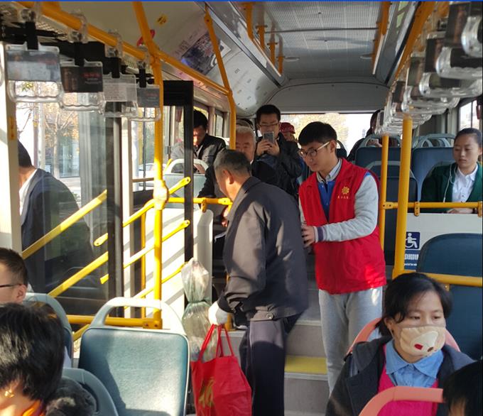 為進(jìn)一步營(yíng)造文明城市復(fù)核迎測(cè)的濃厚氛圍,弘揚(yáng)“奉獻(xiàn)、友愛(ài)、互助、進(jìn)步”的志愿服務(wù)精神,踐行常態(tài)化志愿服務(wù)機(jī)制,市公交公司于10月31日上午聯(lián)合職業(yè)學(xué)院開(kāi)展了志愿服務(wù)活動(dòng)。志愿服務(wù)活動(dòng)主要是引導(dǎo)乘客有序乘車(chē),幫助老弱病殘?jiān)械忍厥獬丝蛢?yōu)先乘車(chē)及主動(dòng)為老弱病殘?jiān)凶屪虺珜?dǎo)乘客保持車(chē)廂衛(wèi)生以及引導(dǎo)公交車(chē)輛規(guī)范??康鹊?。