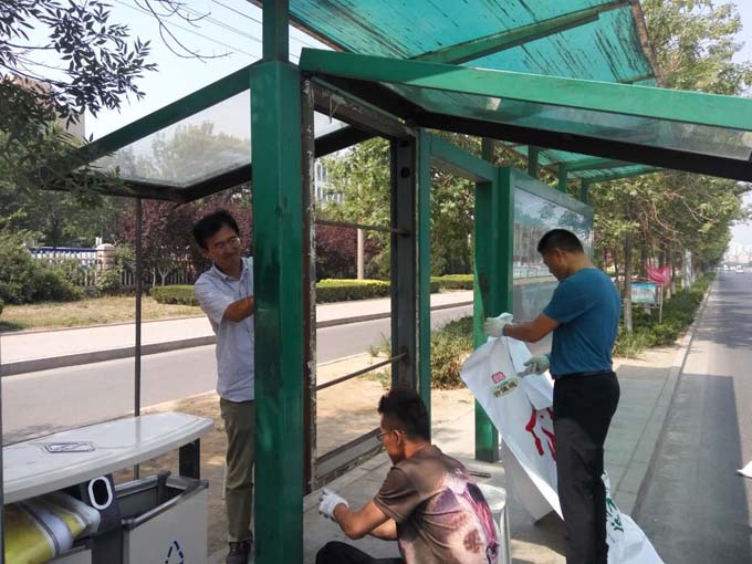 國(guó)慶前夕,市公交公司廣告部利用一周的時(shí)間,對(duì)部門(mén)所負(fù)責(zé)的車(chē)輛廣告,候車(chē)廳廣告及站牌設(shè)施進(jìn)行逐一排查,對(duì)畫(huà)面破舊損壞的廣告立即進(jìn)行拆除和更換,對(duì)候車(chē)廳、站牌等設(shè)施的衛(wèi)生進(jìn)行檢查,發(fā)現(xiàn)有達(dá)不到創(chuàng)城要求的現(xiàn)象,相關(guān)人員立即進(jìn)行處理、改進(jìn),確保排查過(guò)后廣告畫(huà)面整潔美觀、站牌設(shè)施標(biāo)識(shí)清楚完整。