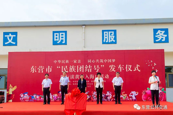 5月24日上午9時,東營市民族團結(jié)號發(fā)車儀式在市公交公司隆重舉行。市委常委、統(tǒng)戰(zhàn)部部長郭艷出席儀式并作講話,市人大常委會副主任張敏,市政協(xié)副主席王新明,市委統(tǒng)戰(zhàn)部副部長、市民宗局局長王燕,市交通運輸局黨組成員、市鐵路港航發(fā)展中心主任朱勝勇,市公交公司黨委書記趙龍等領(lǐng)導(dǎo)同志參加發(fā)車儀式。