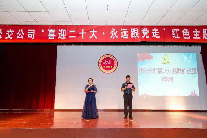 為迎接黨的二十大勝利召開(kāi),更加深入學(xué)習(xí)貫徹省十二次黨代會(huì)精神,集中展現(xiàn)新時(shí)期公交干部職工在各自工作崗位上的新作為、新?lián)?dāng)、新姿態(tài),引導(dǎo)公司干部職工更加堅(jiān)定理想信念,在“七一”建黨節(jié)來(lái)臨之際,市公交公司于6月30日上午組織開(kāi)展了“喜迎二十大·永遠(yuǎn)跟黨走”紅色主題誦讀比賽活動(dòng)。市交通運(yùn)輸局直屬機(jī)關(guān)黨委專(zhuān)職副書(shū)記趙秀來(lái)同志到場(chǎng)指導(dǎo),市公交公司黨委委員、工會(huì)主席蔣積堯,黨委委員、辦公室主任劉玉忠等出席活動(dòng)。