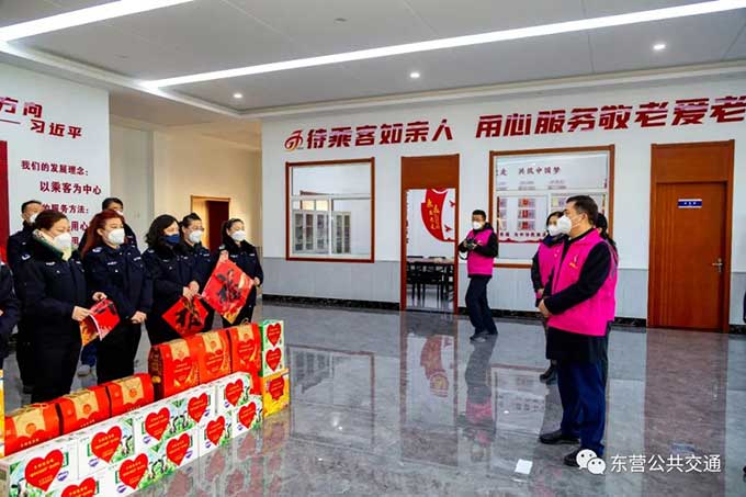 在新春佳節(jié)到來之際,1月20日上午,市婦聯黨組書記、主席侯麗霞帶領市婦聯、東營農商行組成的慰問隊到市公交公司進行“黃河口過大年”送溫暖活動,看望慰問堅守在工作崗位的一線公交駕駛員,并致以新春的問候與祝福。候麗霞詳細了解了一線公交駕駛員的身體狀況和家庭生活情況,叮囑公交駕駛員要做好疫情防控,合理安排好工作和休假,祝愿大家度過一個快樂祥和的春節(jié)。同時,還送上春聯、牛奶、八寶粥等慰問物資。