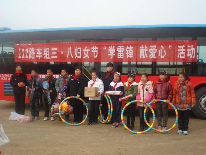 當(dāng)前,“學(xué)習(xí)雷鋒同志,弘揚(yáng)雷鋒精神”活動正在全國上下如火如荼的進(jìn)行。三、八節(jié)前夕, 112路的姐妹們就謀劃著用本線路在公司“文明服務(wù)示范線路”評比中獲得的獎(jiǎng)金,在三八婦女節(jié)當(dāng)天做點(diǎn)有意義的事,以“關(guān)注社會、奉獻(xiàn)愛心”的方式歡度自己的節(jié)日。最后一致商議決定,對大杜小學(xué)進(jìn)行捐助。