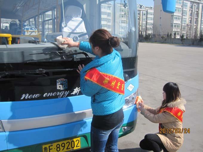 3月24日上午,市公交公司汽車一隊聯(lián)合東營市職業(yè)學院開展了“愛隨心動,圍繞你我他”志愿活動。 來自東營市職業(yè)學院經濟系的大學生和汽車一隊職工共計32人,分成兩個小組,一組乘坐公交車上路為特需乘客服務,幫助疏導乘客;一組幫助駕駛員擦拭車身,清掃車廂衛(wèi)生。大家工作起來井然有序,有條不紊,尤其活躍在車廂為乘客服務的志愿者們,更是得到了乘客的一致好評,成為公交車上一道亮麗的風景。