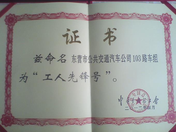 近年來(lái),市公交公司103路車組人員把優(yōu)質(zhì)服務(wù)作為積極奉獻(xiàn)的目標(biāo),視乘客為親人,愛(ài)崗敬業(yè),無(wú)私奉獻(xiàn),出色地完成了各項(xiàng)營(yíng)運(yùn)生產(chǎn)任務(wù),得到了廣大乘客的一致好評(píng),被親切地稱之為“滿意車”、“放心車”、“安全車”。并先后獲得山東省城建行業(yè)“文明服務(wù)標(biāo)兵”、東營(yíng)市五一勞動(dòng)獎(jiǎng)?wù)隆|營(yíng)市“十佳服務(wù)標(biāo)兵”、“市級(jí)工人先鋒號(hào)”、市文明委授予的“全市十佳文明示范窗口”、省總工會(huì)授予的“山東省工人先鋒號(hào)”等多項(xiàng)榮譽(yù)稱號(hào),展示了公交駕駛員良好的精神風(fēng)貌,營(yíng)造了和諧文明的社會(huì)氛圍。