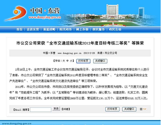2013年2月28日東營市政府網(wǎng)站報道