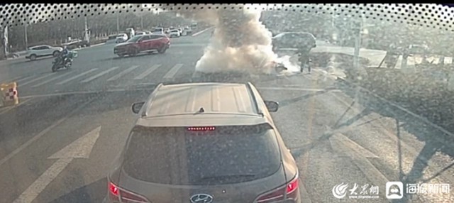 眼看火苗隨風越燒越旺,危急時刻,17路駕駛員張曉良駕駛著魯E97102公交車運行途經此處等紅燈,遠遠地看到前方冒著火光和滾滾濃煙的電動車,他拿起車載滅火器沖了過去,“當時路上的行人和車輛較多,情況十分的危急。”張曉良回憶說,他沒顧上仔細查看,把一瓶滅火器噴完,便抓緊回到車上繼續(xù)運行。